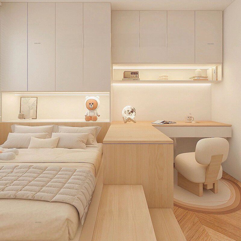 卧室新款原木风榻榻米儿童房全屋定制衣柜床一体整体带书桌书房床