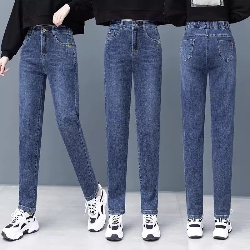 秋冬牛仔裤大码200斤女裤胖mm宽松显瘦哈伦高腰老爹裤加绒长裤潮