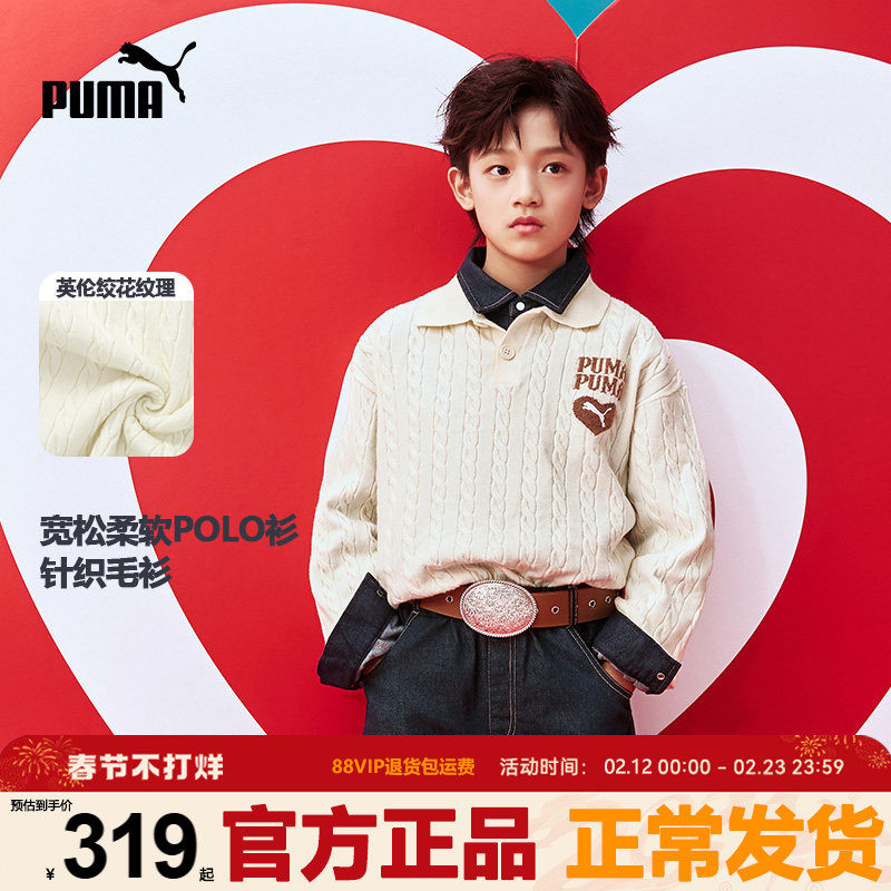 PUMA彪马小童装针织毛衣冬季新款中大学生男打底衫POLO领套头上衣