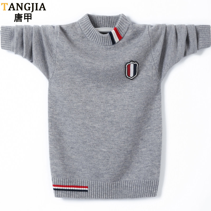 秋冬男童毛衣套头加厚针织洋气男孩7-15岁学生韩版休闲打底保暖衣