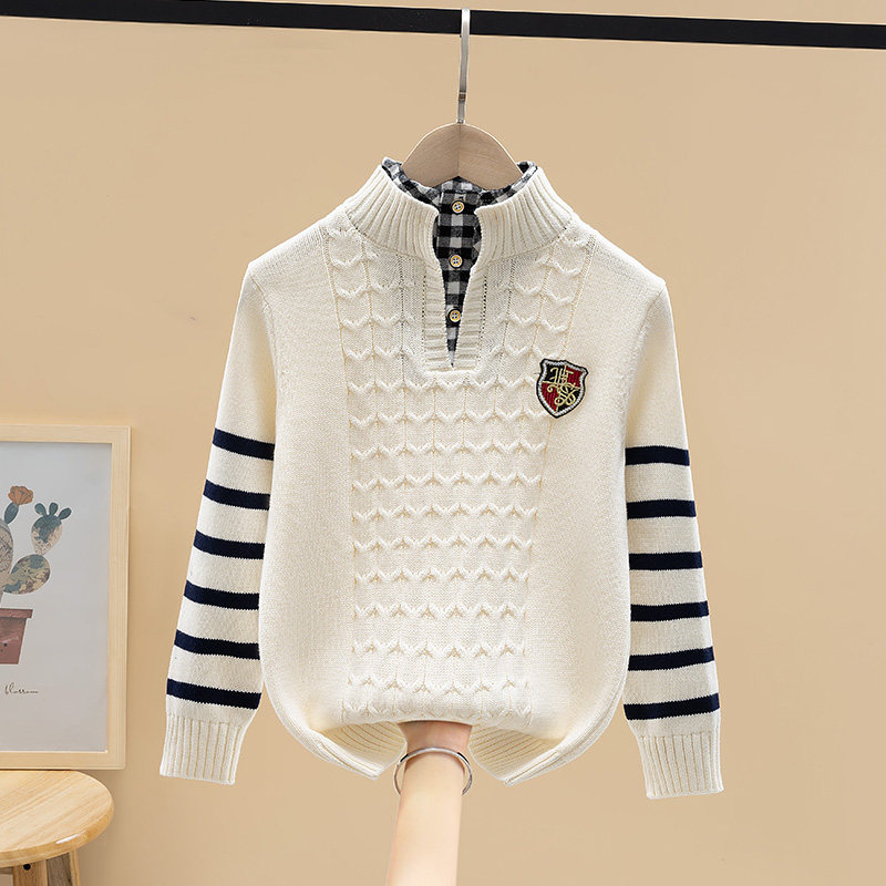 男童过年毛衣套头冬装新款童装初中学生针织衫儿童假两件潮流上衣