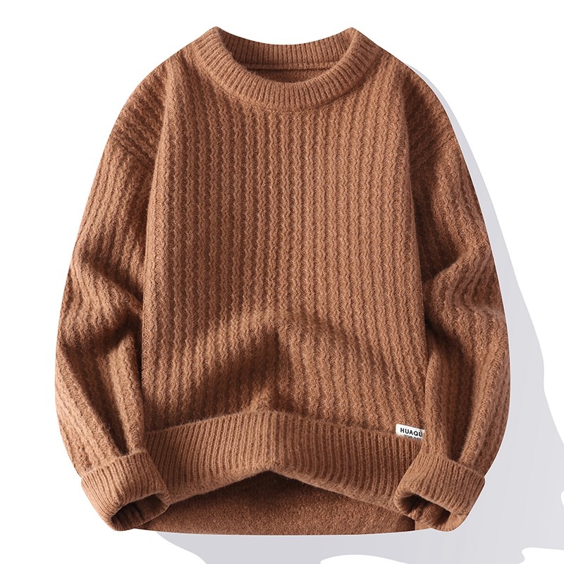 圆领毛衣男秋冬款保暖套头打底衫青少年学生宽松型加厚线衣针织衫