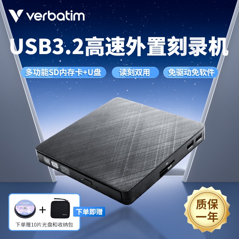 Verbatim威宝 外置光驱DVD外置刻录机USB3.2/TypeC笔记本移动光驱