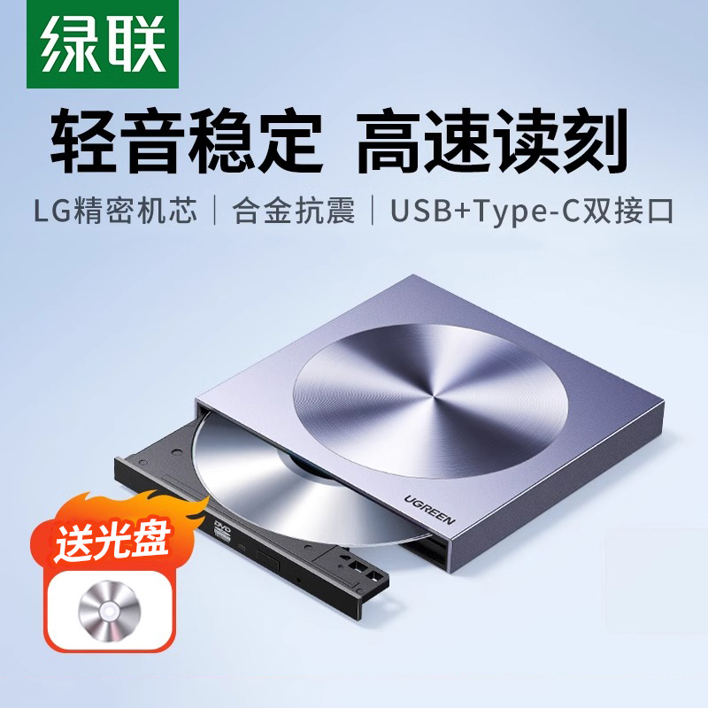 绿联外置光驱刻录机光盘播放器读取dvd外接笔记本电脑usb移动cd机