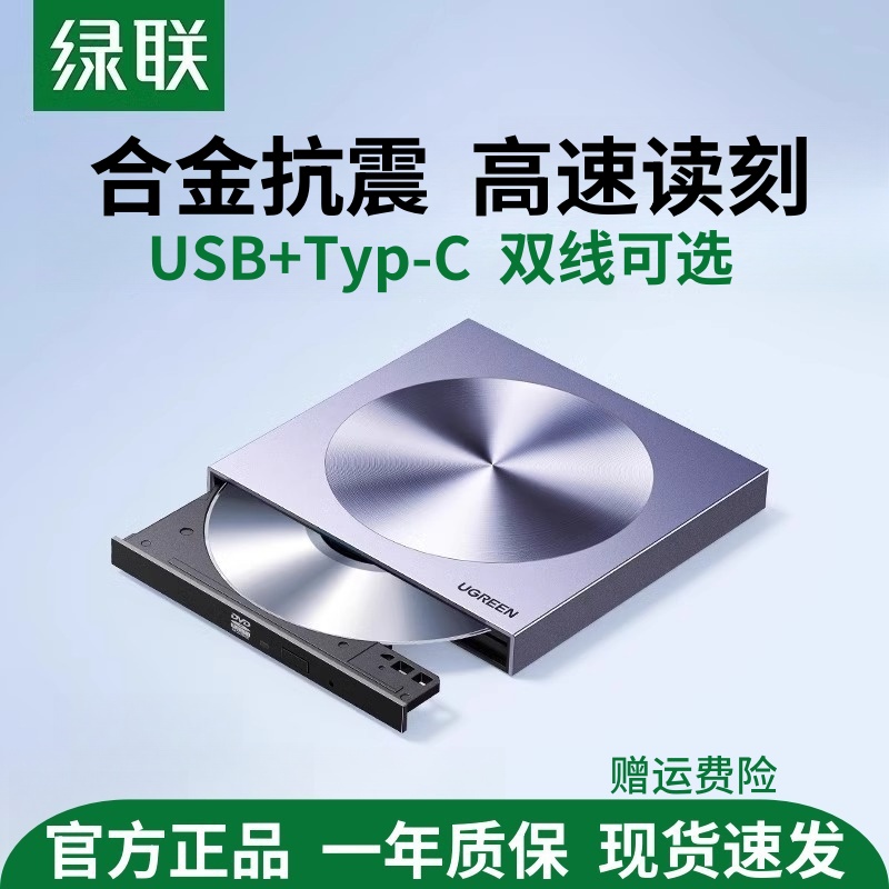 原装正品 绿联外置刻录机USB+Typ-C双线移动光驱dvd/cd笔记本外接