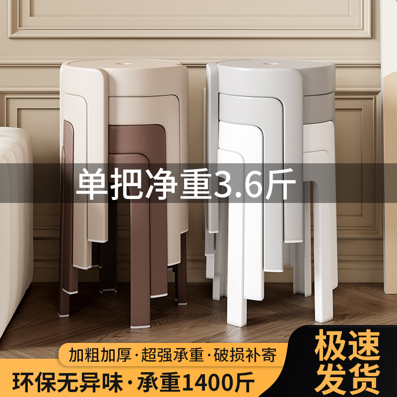 塑料凳子加厚成人家用可叠放吃饭餐桌圆凳胶椅子简约北欧客厅高凳