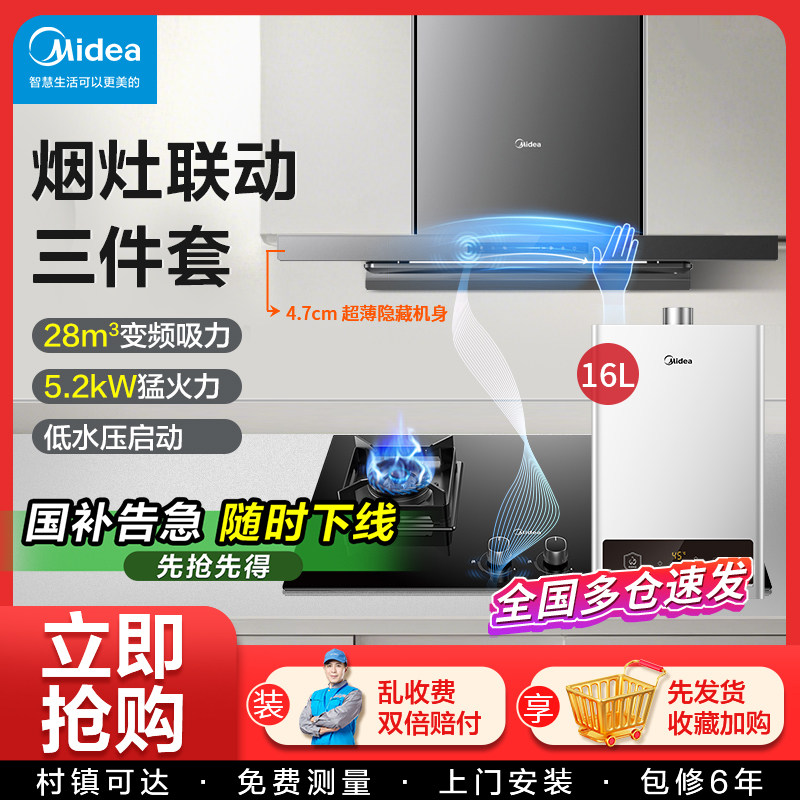 美的抽油烟机燃气灶套餐大吸力烟灶消热水器家用厨房组合三件套装