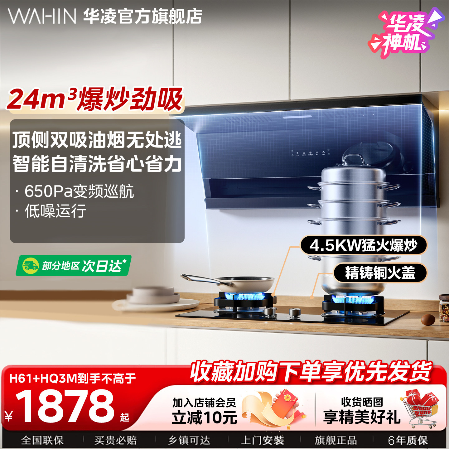 华凌神机家用顶侧双吸式变频抽油烟机燃气灶套装烟灶消三件套H61