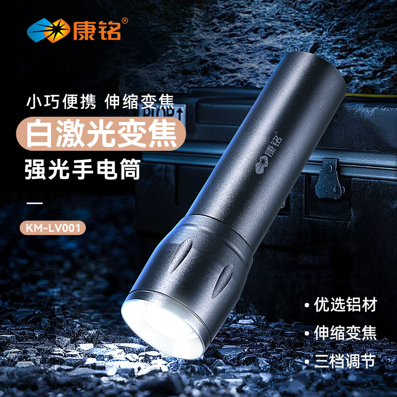 康铭手电筒家用强光充电超亮户外小便携耐用远射儿童LED超长续航