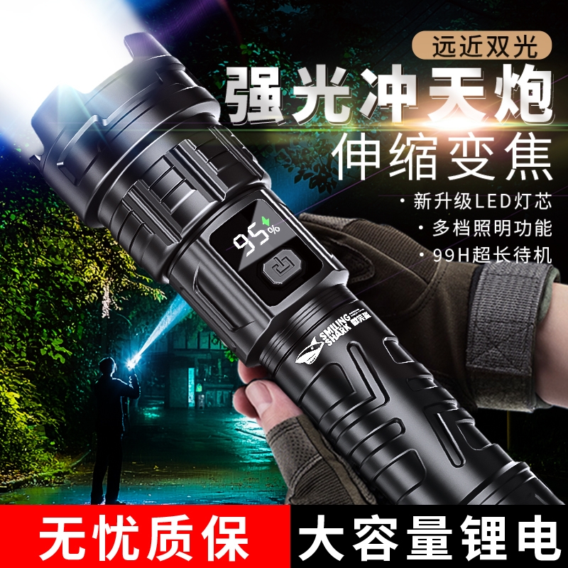 2025新款强光手电筒充电超亮远射便携变焦超长续航户外露营照明灯