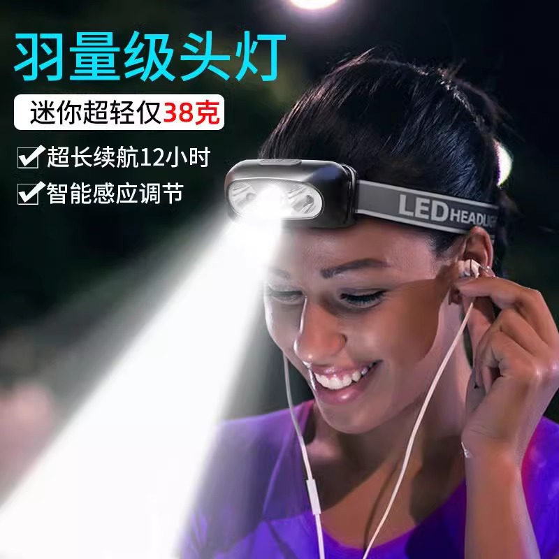 头灯强光充电超亮头戴式夜钓鱼照明户外超长续航超轻感应小手电筒