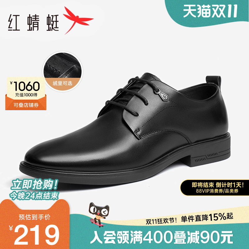 红蜻蜓男鞋秋季男款商务正装男士真皮皮鞋舒适软底结婚新郎德比鞋