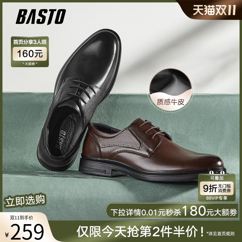 百丽男士商务正装皮鞋秋季新款黑色德比真皮增高新郎婚鞋A1208CM3