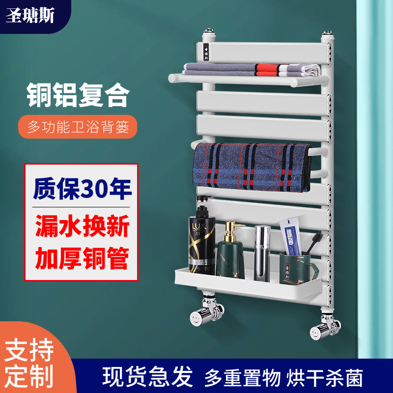 新款直销小背篓铜铝复合卫浴暖气片带置物架毛巾挂杆散热器置物架