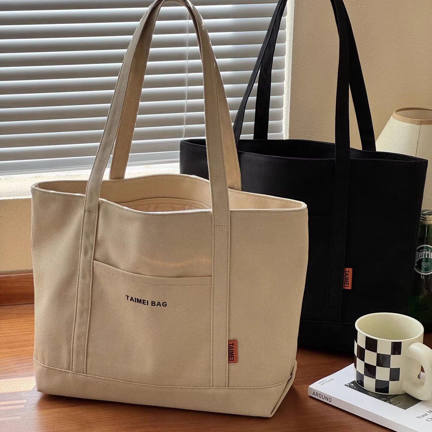 原创自制日韩文艺简约通勤手提单肩帆布随性休闲时尚学生托特包袋