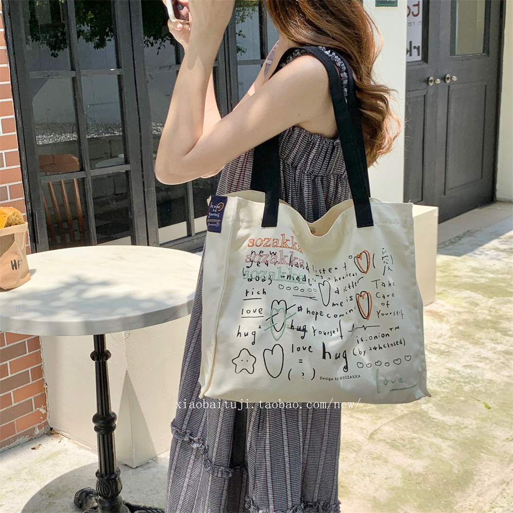 大容量原创单肩帆布包女学生定制日韩ins风简约夏可爱手提包竖款