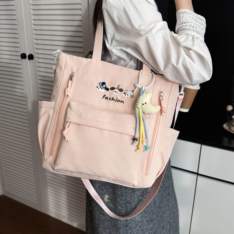 日韩帆布包女大容量单肩斜挎包多口袋休闲学生手提包时尚百搭通勤