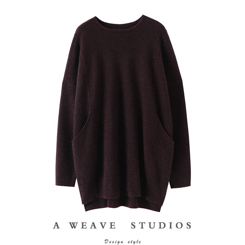 气质刚刚好!100%纯山羊绒衫开叉不对称侧口袋加厚女毛衣宽松秋冬