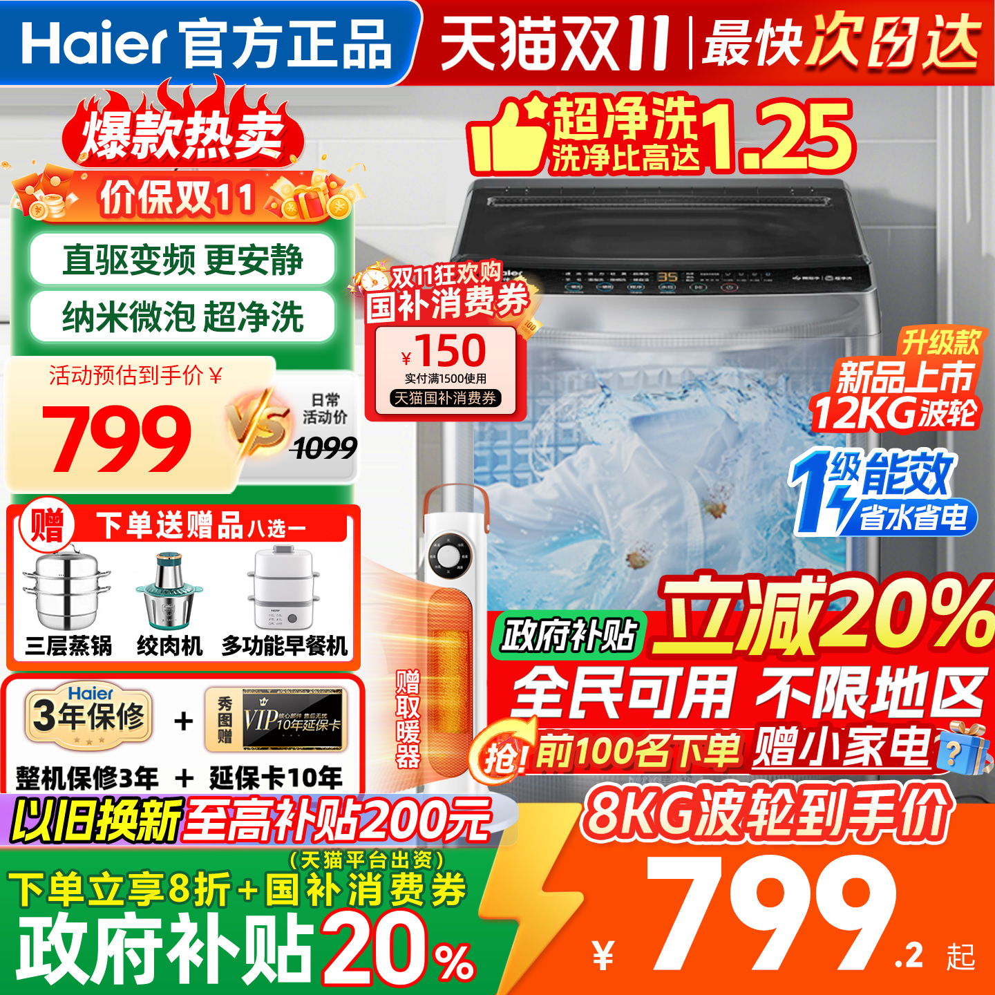 以旧换新丨海尔洗衣机全自动家用手搓洗10/11/12/13KG大容量波轮