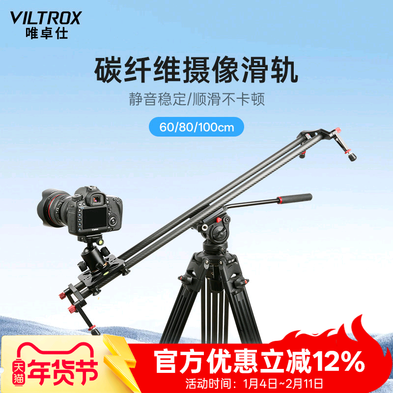 唯卓仕VC碳纤维滑轨单反单摄影滑轨导轨摄像机相机手机拍摄影轨道阻尼小滑轨便携视频摇臂云台支架滑轨