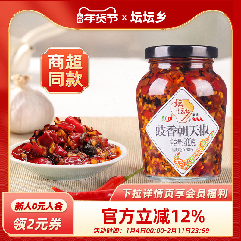 坛坛乡豉香朝天椒豆豉辣椒酱280g瓶装风味湖南特产家用做菜拌饭面