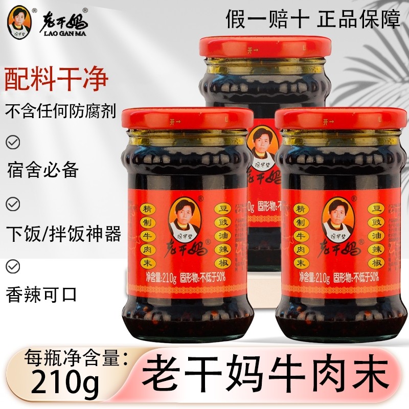 老干妈牛肉末精制豆豉油制辣椒210g瓶装正宗贵州风味下饭辣椒酱
