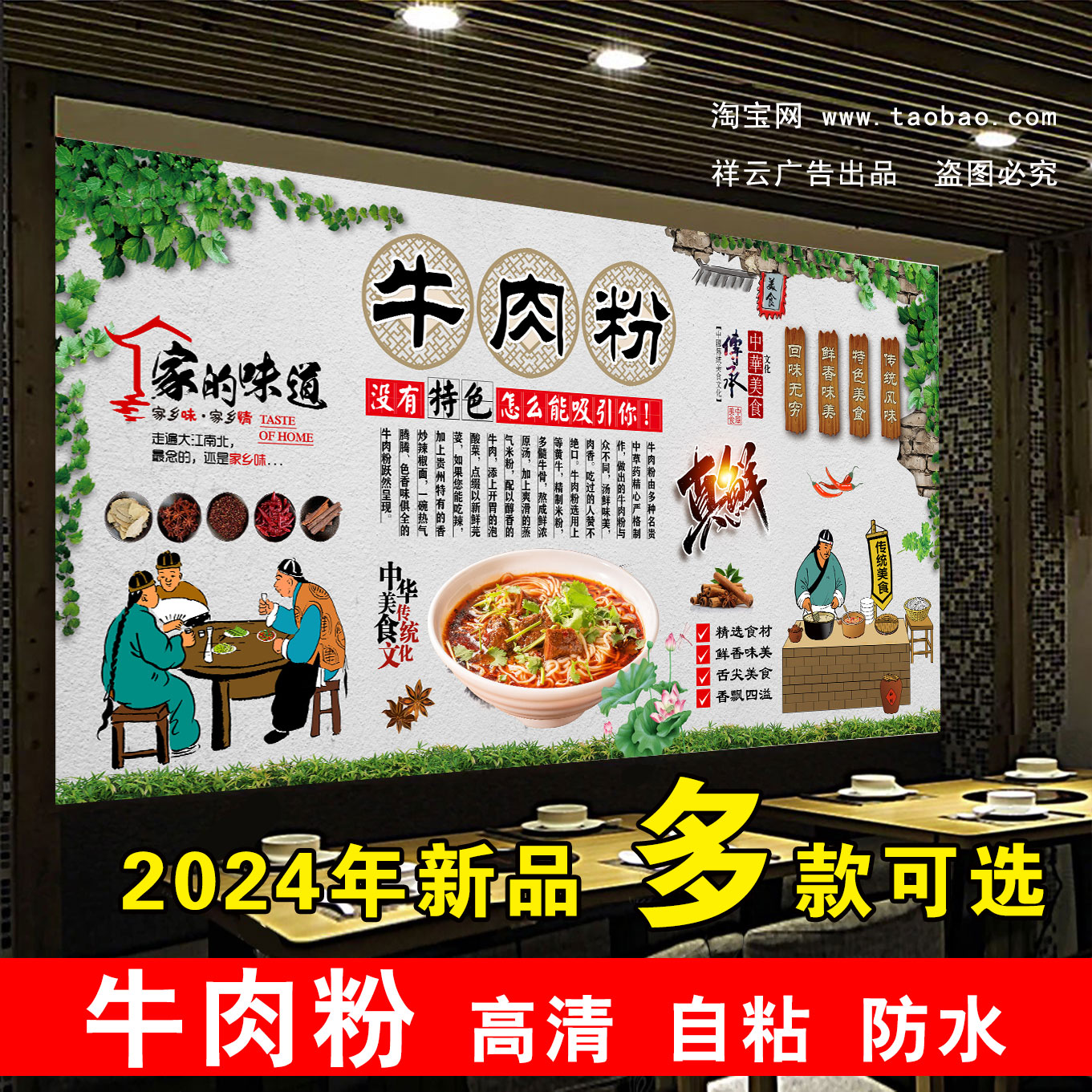 花溪牛肉粉墙贴壁画常德牛肉粉广告吃牛肉的好处贴纸牛肉米线海报