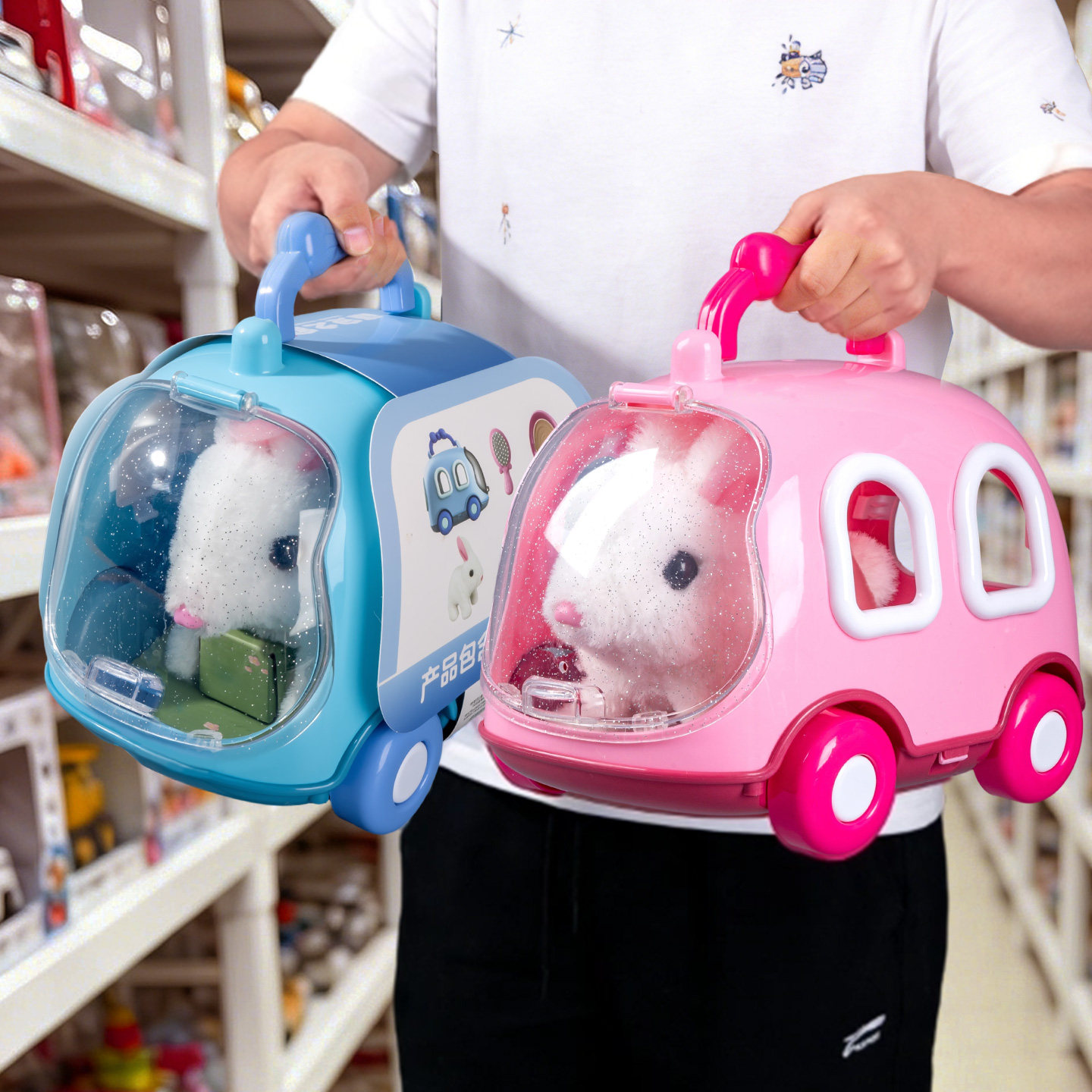 电动兔子毛绒玩具宠物笼子可爱玩偶仿真女孩周岁宝宝新年生日礼物