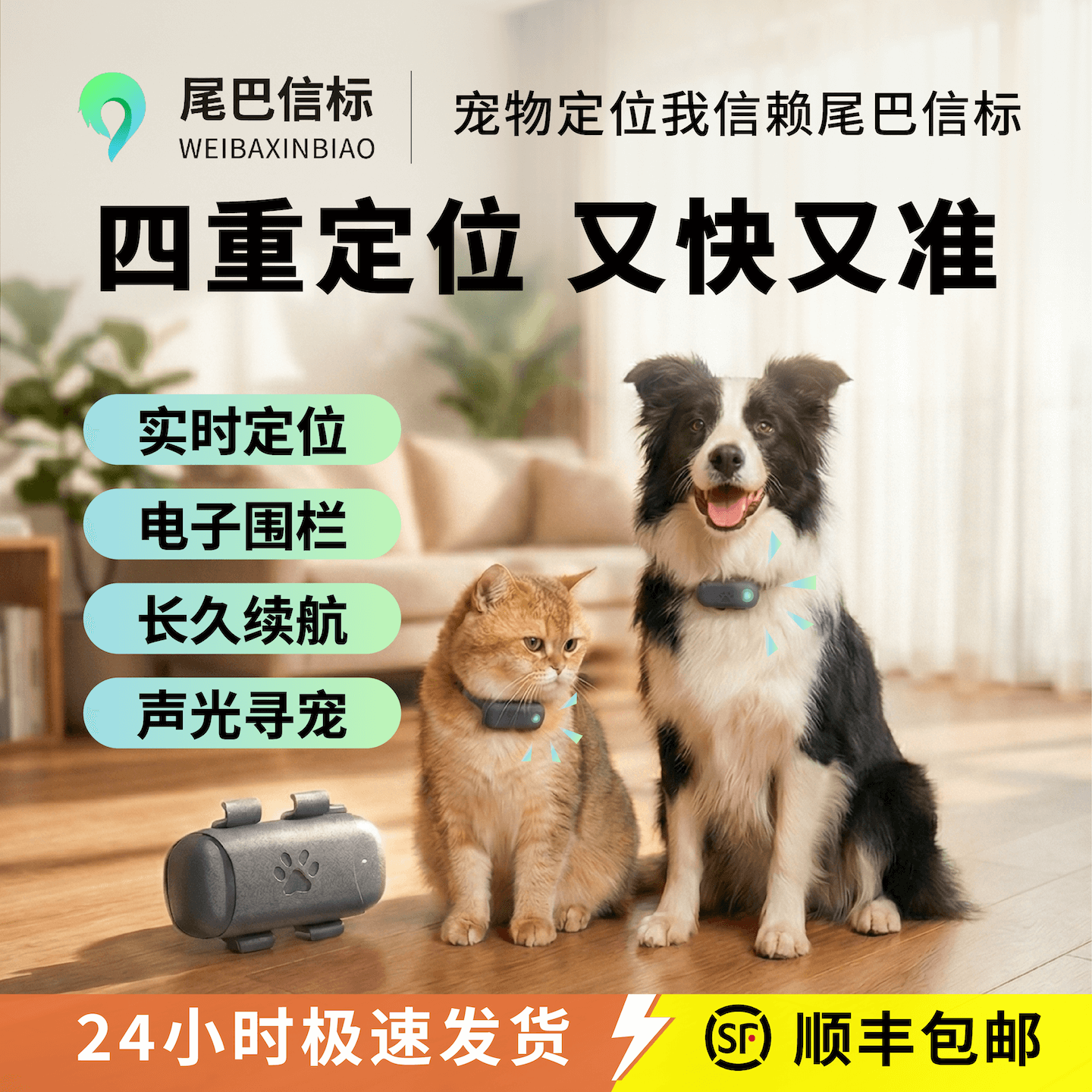 尾巴信标宠物定位器GPS实时定位声光寻宠猫狗防丢追踪器长续航