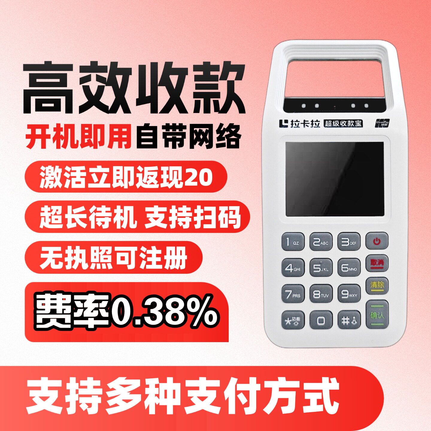 收钱吧拉卡拉扫码王支付收银一体机移动餐饮收银4G手持商户收钱器