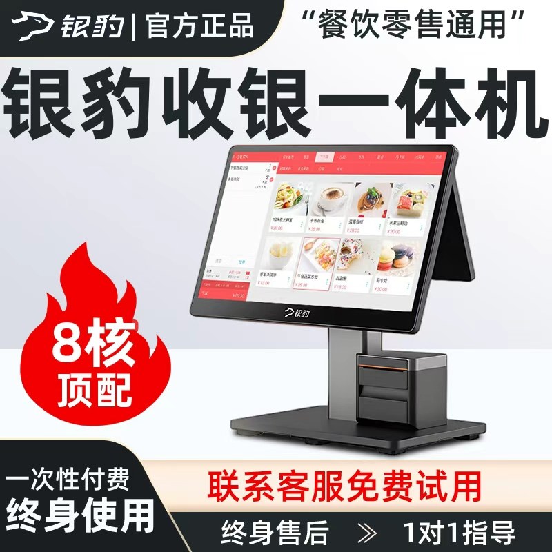 银豹收银系统软件超市便利店小型服装收款机餐饮奶茶面馆饭店扫码点餐机点菜机点单机电脑双屏新款收银一体机