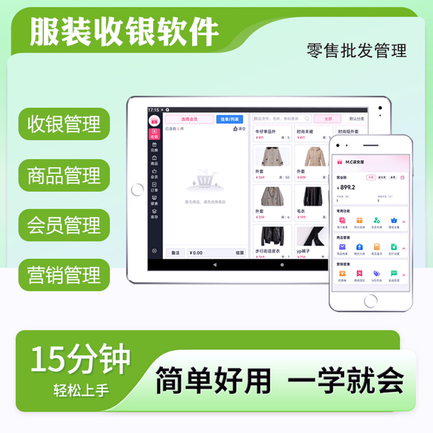 服装店手机收银软件鞋店内衣店女装店零售批发销售开单进销存出入库记账库存管理系统平板电脑专用收银一体机
