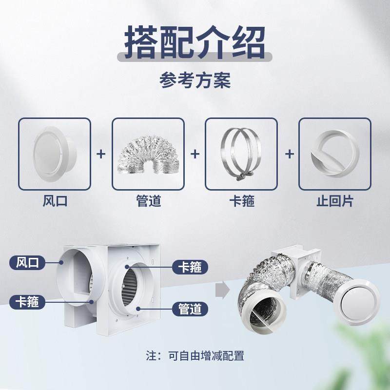 穿墙一体式管道排气扇卫生间抽风机厨房棋牌室静音新风换气排风扇