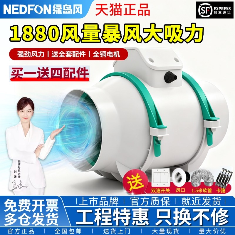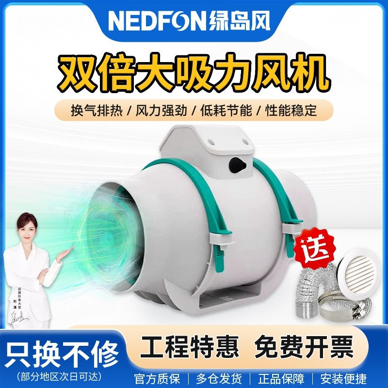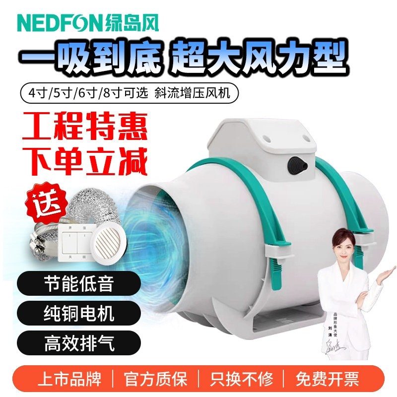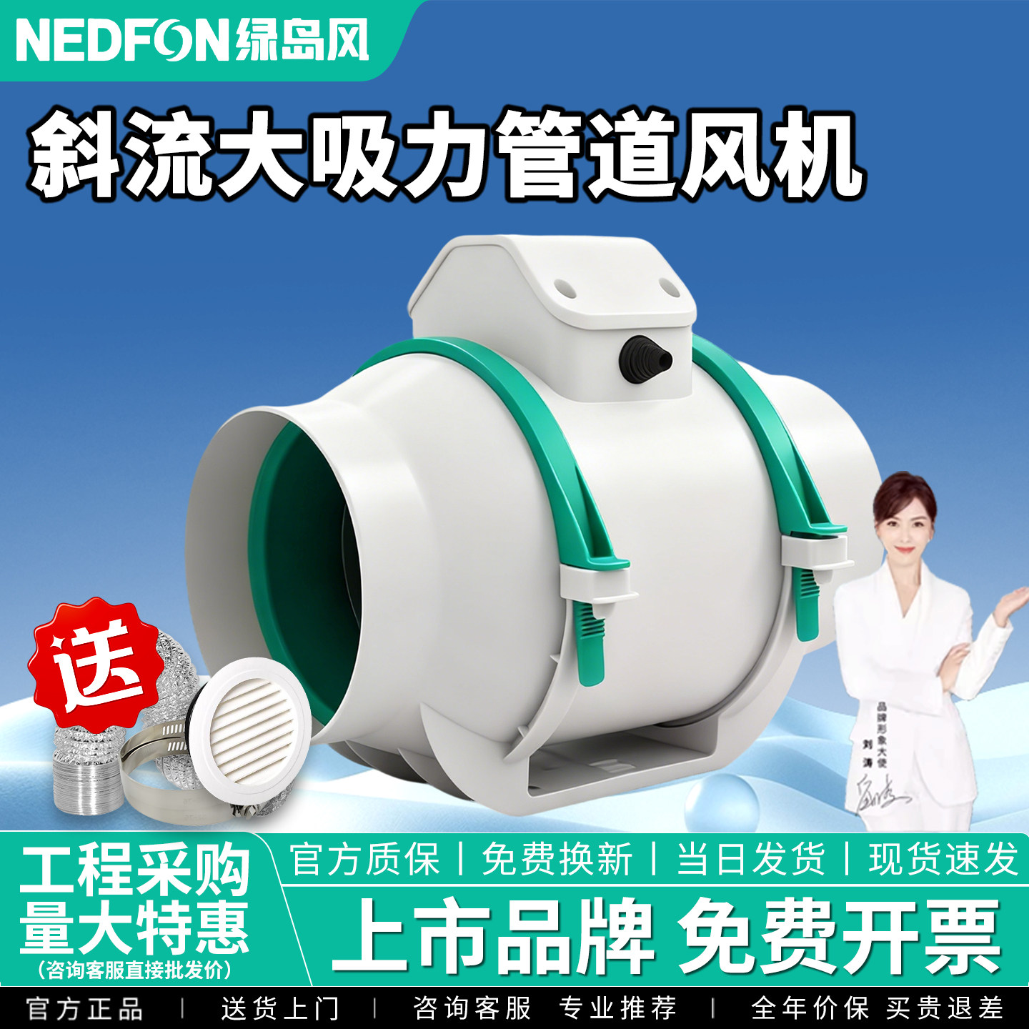 绿岛风斜流管道式风机增压强力轻机换气扇厨房卫生间排风机音抽风