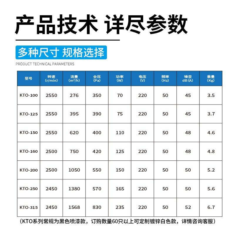 KTO圆形管道式风机同轴离心风机管道强力换气排风机静音抽风机