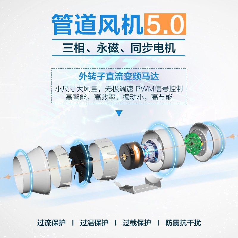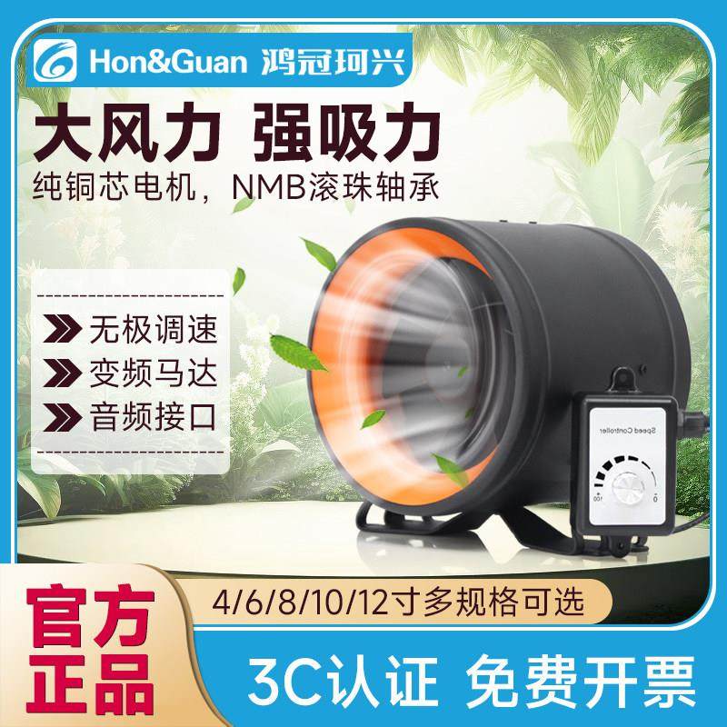 鸿冠变频金属管道式风机地下厂房室内通风换气扇农村柴火灶排气扇