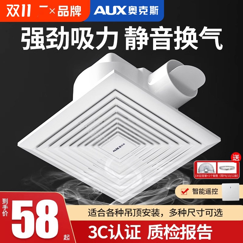 奥克斯排气扇换气扇厨房抽风机强力卫生间集成吊顶吸顶管道式排风