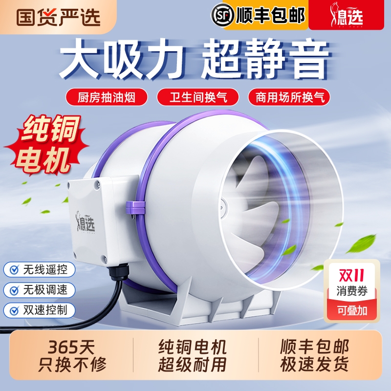纯铜管道风机抽风机超静音强力斜流排风机换气扇大吸力通风增压式