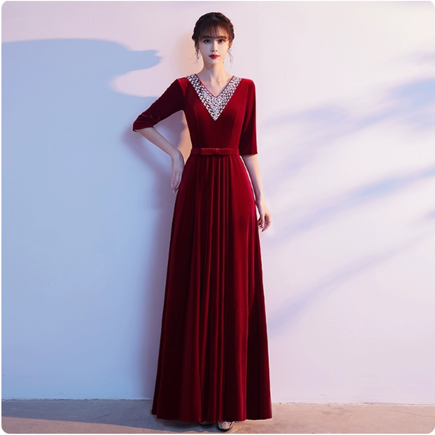 新款金丝绒大合唱礼服演出服女长裙成人中老年合唱团指挥服晚礼服