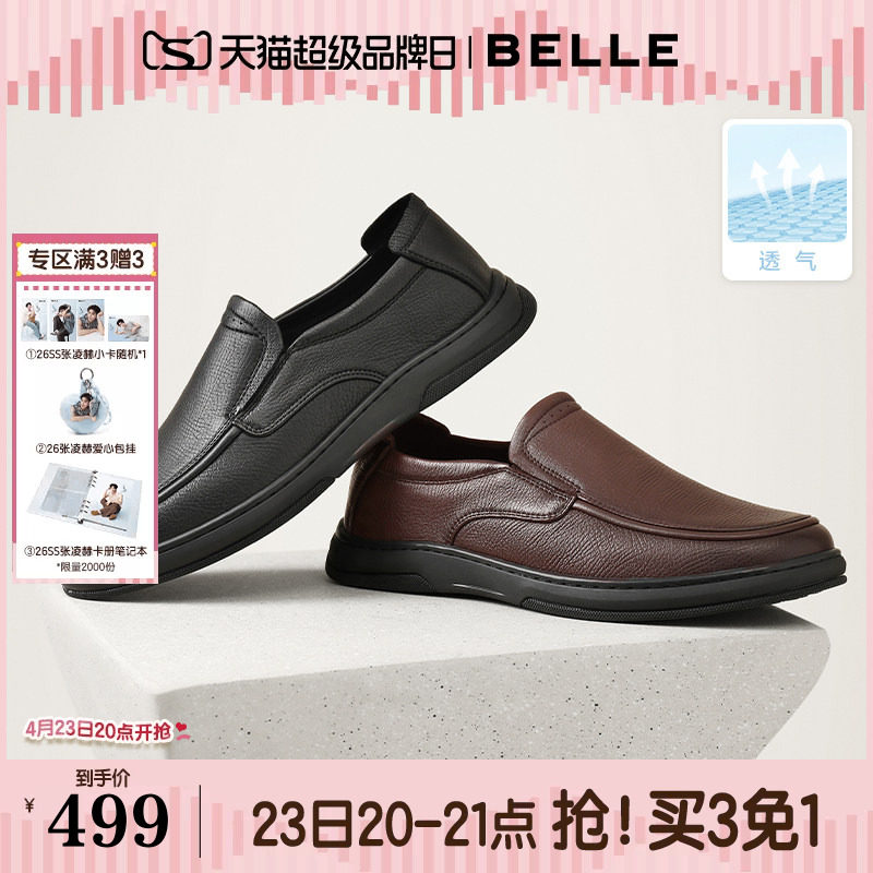 百丽男士软底商务休闲皮鞋夏季新款一脚蹬透气真皮爸爸鞋子A1010A