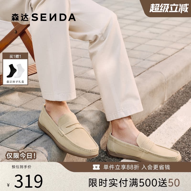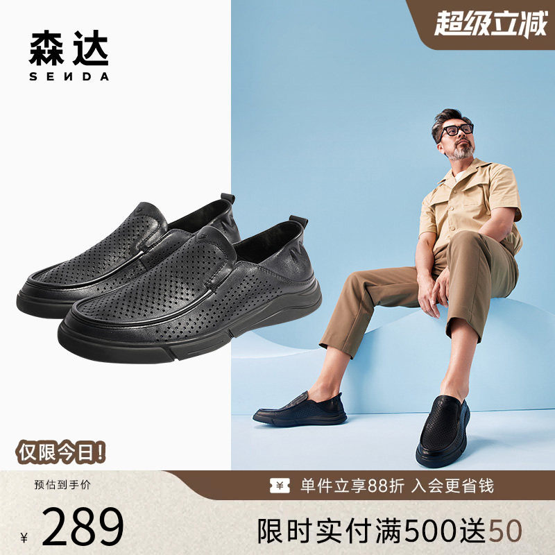 森达爸爸豆豆乐福鞋男夏季薄款一脚蹬打孔透气休闲牛皮鞋1BH01BM4