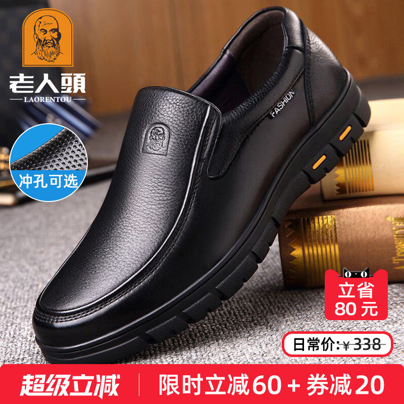 老人头男鞋春季皮鞋男士中年商务休闲皮鞋真皮透气软底舒适爸爸鞋