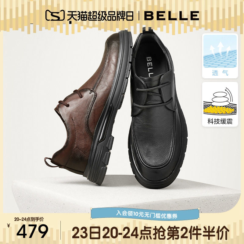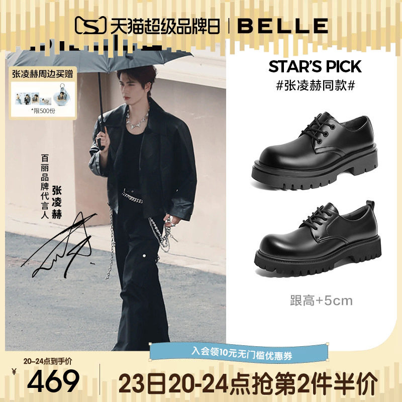 张凌赫同款百丽男鞋夏季新款厚底增高皮鞋大头休闲德比鞋A1434AM4
