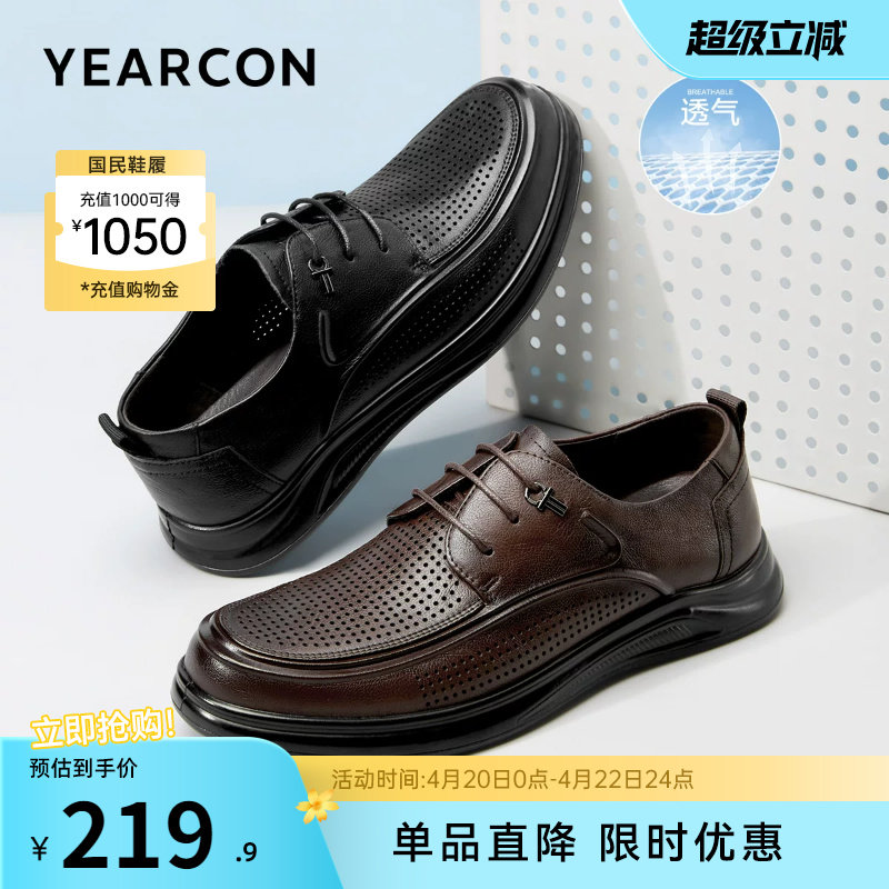 意尔康男鞋夏季商务休闲皮鞋男士真皮薄款镂空透气男款皮凉鞋软底