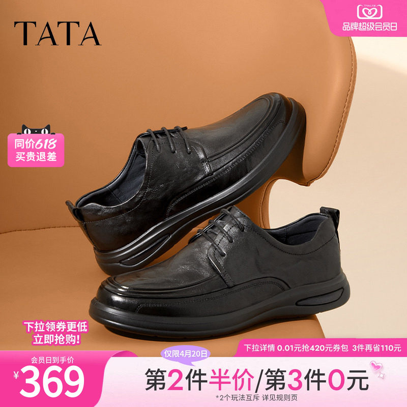 TATA他她商务休闲男士皮鞋舒适通勤黑色真皮软底爸爸鞋子MEZ02AM4