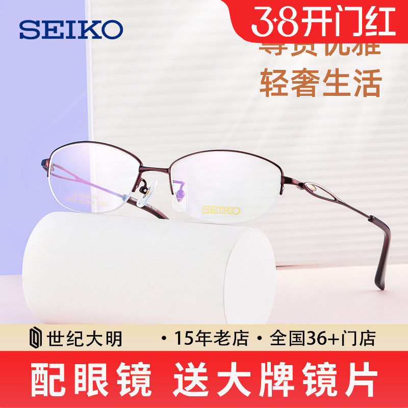 SEIKO精工眼镜框 女款时尚气质商务半框超轻近视钛材眼镜架HC2010