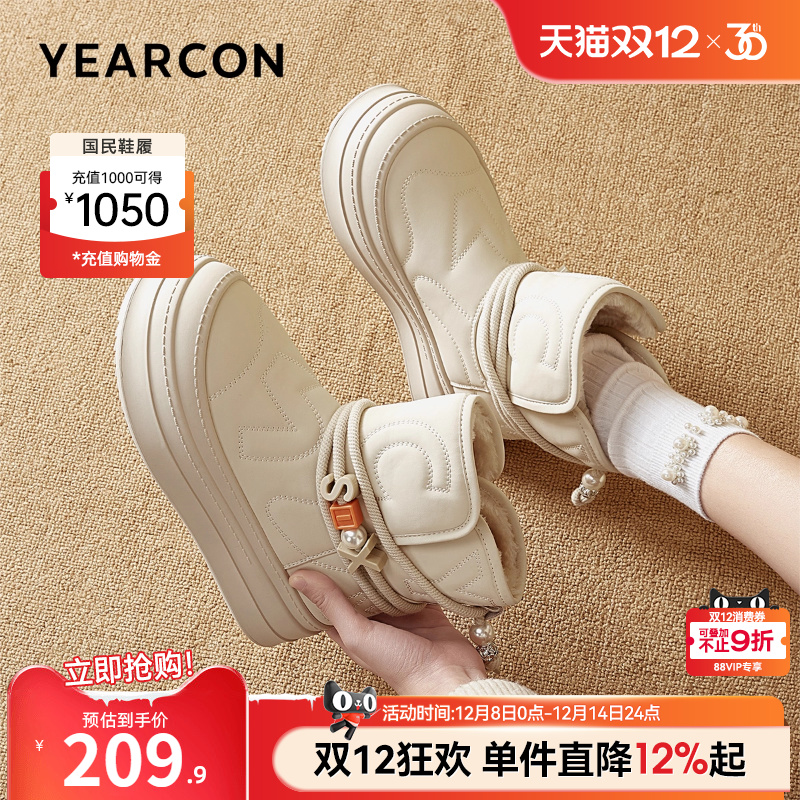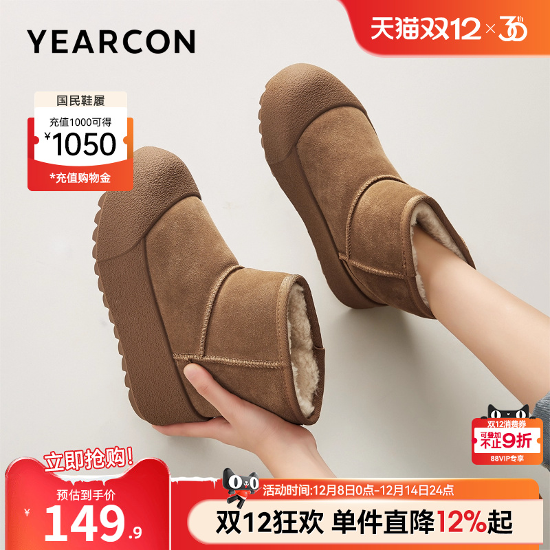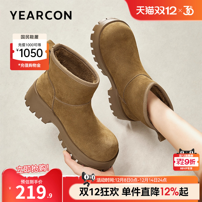 意尔康女鞋冬季加绒保暖棉鞋时尚厚底短筒雪地靴户外休闲短靴女士