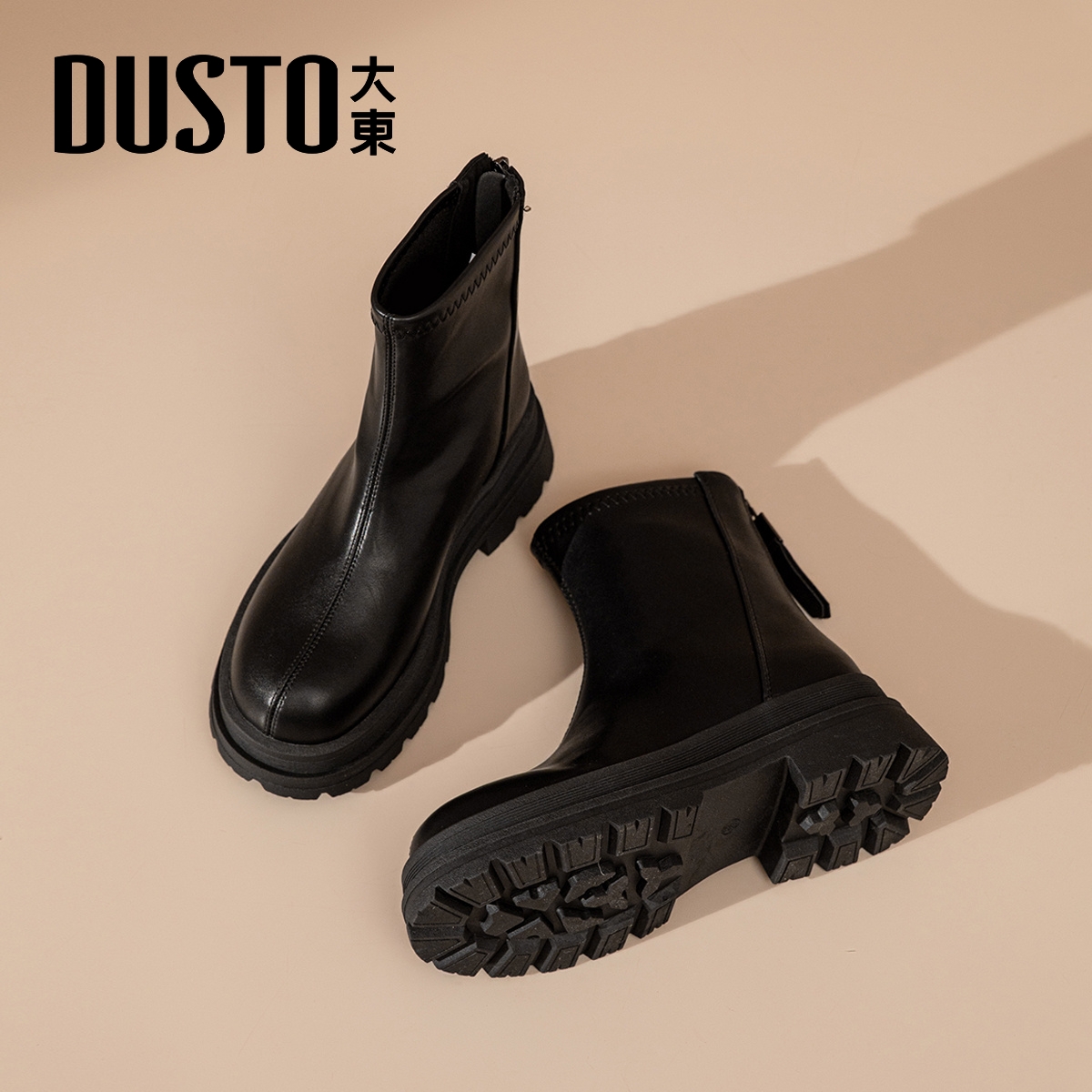 大东黑色切尔西靴女2025新款秋冬厚底增高靴子短靴女士瘦瘦靴女靴