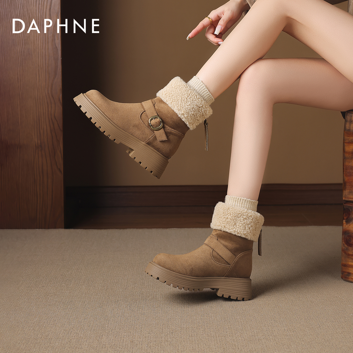 达芙妮加绒雪地靴女款2025新款冬季棕色厚底马丁短靴女士保暖棉鞋