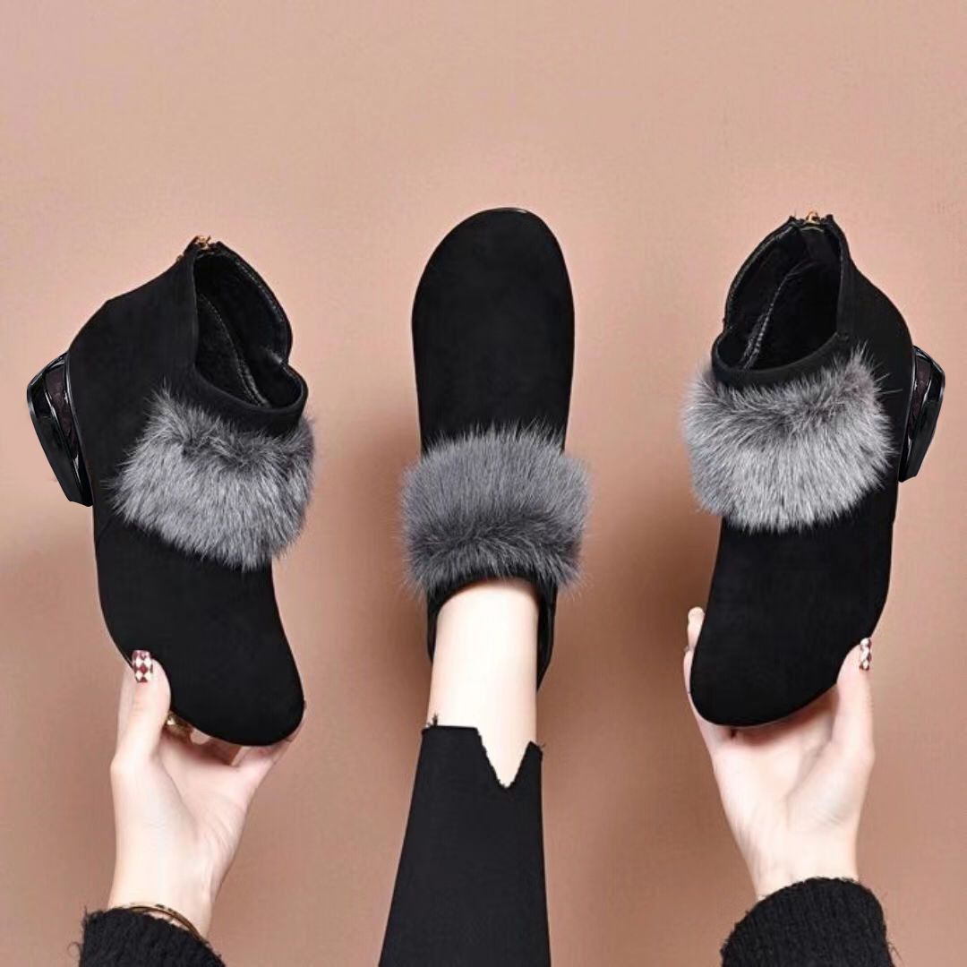 冬季保暖加绒低中粗跟厚羊毛妈妈棉鞋短靴女士真皮棉鞋女式棉皮鞋